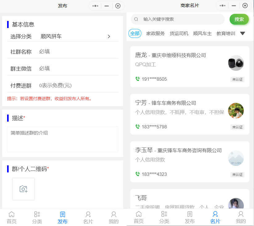 2、通过人脉广场,将商家信息通过名片进行展示,让同城服务、资源对接、人脉推广更加便捷高效。低门槛创建商家名片,通过分享转发,在实现推广宣传自己的同时,吸引更多人加入进来,为平台带来更多流量,让平台更有价值。