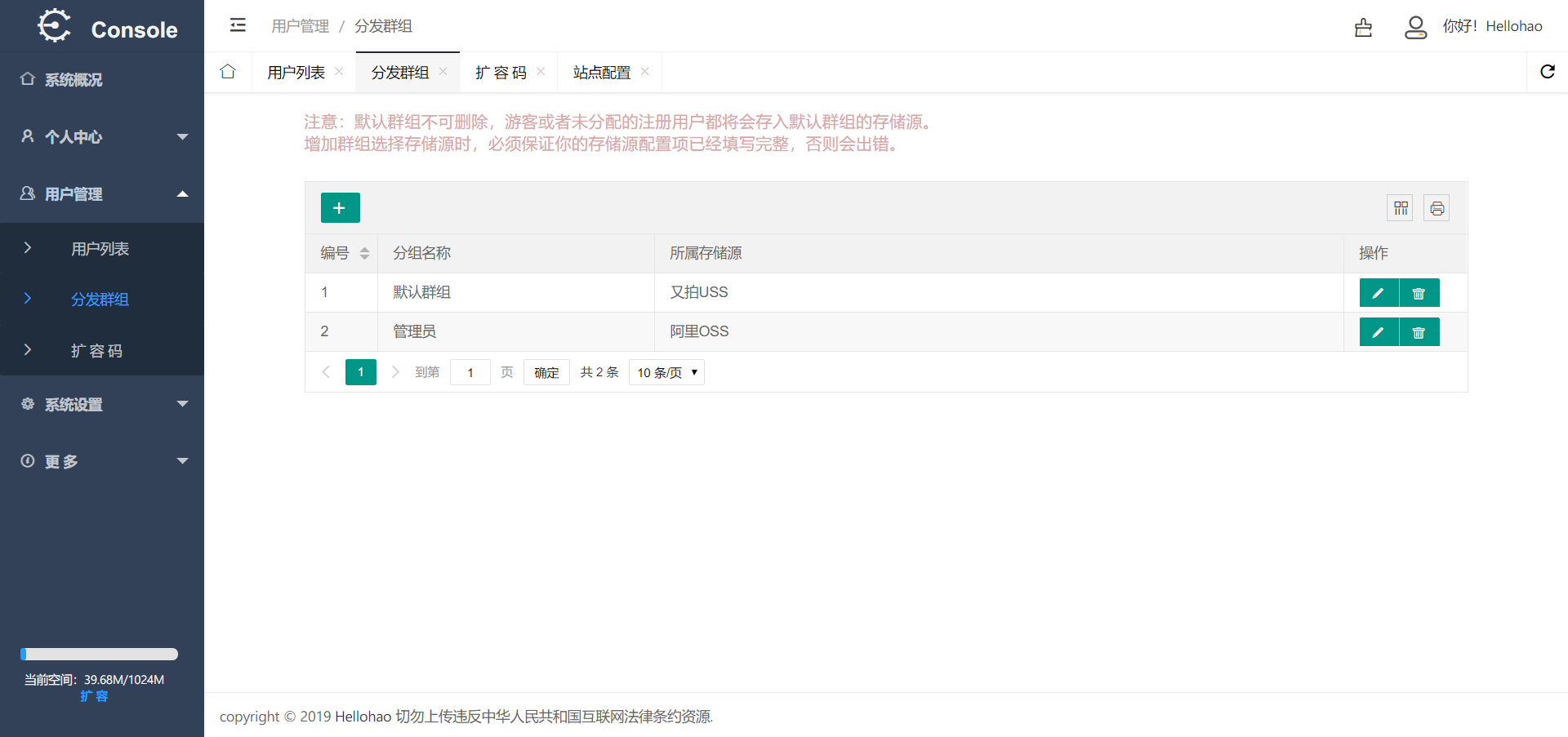 目前已经支持对接本地、网易、阿里、又拍、七牛、腾讯、FTP、U-File、Backblaze、Minio等存储源。功能强悍,作者立志要把图像托管一步一步开发到极致。未来,Hellohao图像托管程序不仅仅是图床那么简单。