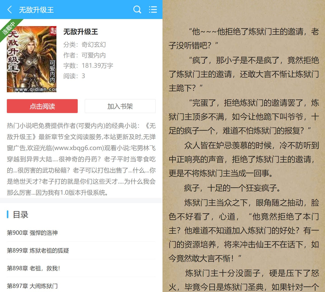 站长评测:后台带了5个采集规则可以采集小说30万本大概约10G。测试发现有几个接口是完好可用的,前端原来有点问题顺手修复了。