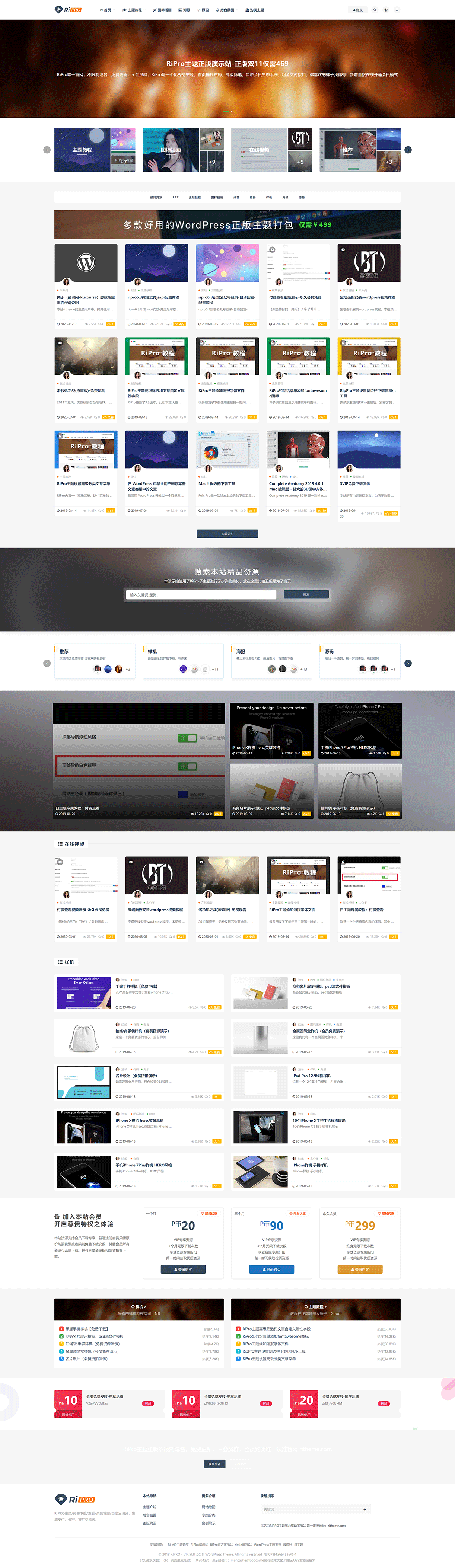 RiPro是一个优秀的主题,首页拖拽布局,高级筛选,自带会员生态系统,超全支付接口,你喜欢的样子我都有!RiPro主题,更强大的全资源/素材类主题,无需插件,集成强大的支付,后台管理,用户体验舒服。支持卡密,充值,积分,会员,高级筛选,推广佣金,作者佣金,前台创建文章,统计,自定义币种,自定义会员标识,全站功能实现AJAX,图片全站真正懒加载,支持SEO,注册邮件验证码,等等等等!